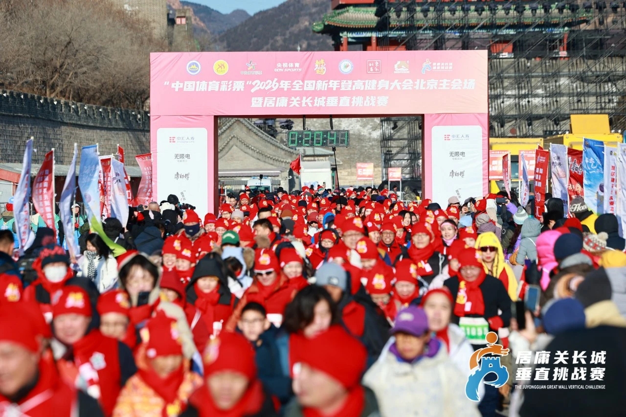 全民登高谱新篇,策马奔腾启华年。2026年1月1日,“中国体育彩票”2026年全国新年登高健身大会北京主会场暨居庸关长城垂直挑战赛,在北京昌平“天下第一雄关”居庸关长城正式鸣枪启程。近2000名运动爱好者满怀对新一年的希望和向往,垂直而上、登高健身,喜迎新年曙光,在古老长城上绘就了一幅热烈、动感、速度与激情相融合的全民健身时代画卷。