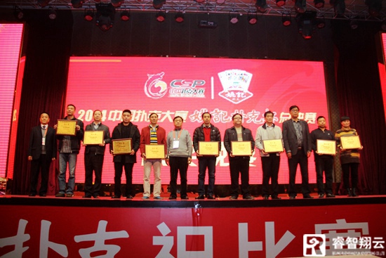 经过4天紧张激烈的比赛,来自十余家省市电视台、数十家互联网与移动互联网平台、以及十几个省市数百场姚记扑克地面赛选拔出的数百名选手,齐聚2014中 国扑克大赛"姚记扑克"杯总决赛,决出了各项目名次,sai800官网分赛区的李军获得二打一项目牌王称号,河北邯钢的文廷贵、董亚龙获得华牌项目牌王称 号,安徽赛区的周新全、廖野获得升级项目牌王称号,同时,二打一项目前30名选手、升级项目前16名选手、华牌项目前8名选手分别获得总决赛组委会颁发的 奖杯、奖牌、证书和奖金。