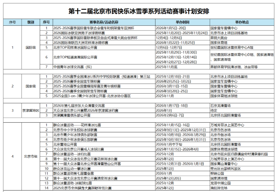 第十二届北京市民快乐冰雪季系列活动赛事计划安排