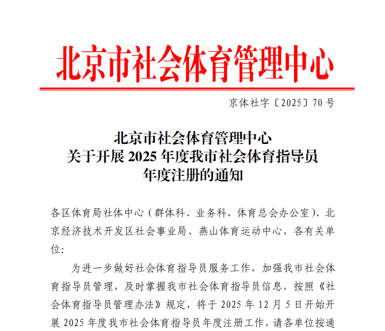 北京市社会体育管理中心关于开展2025年度我市社会体育指导员年度注册的通知