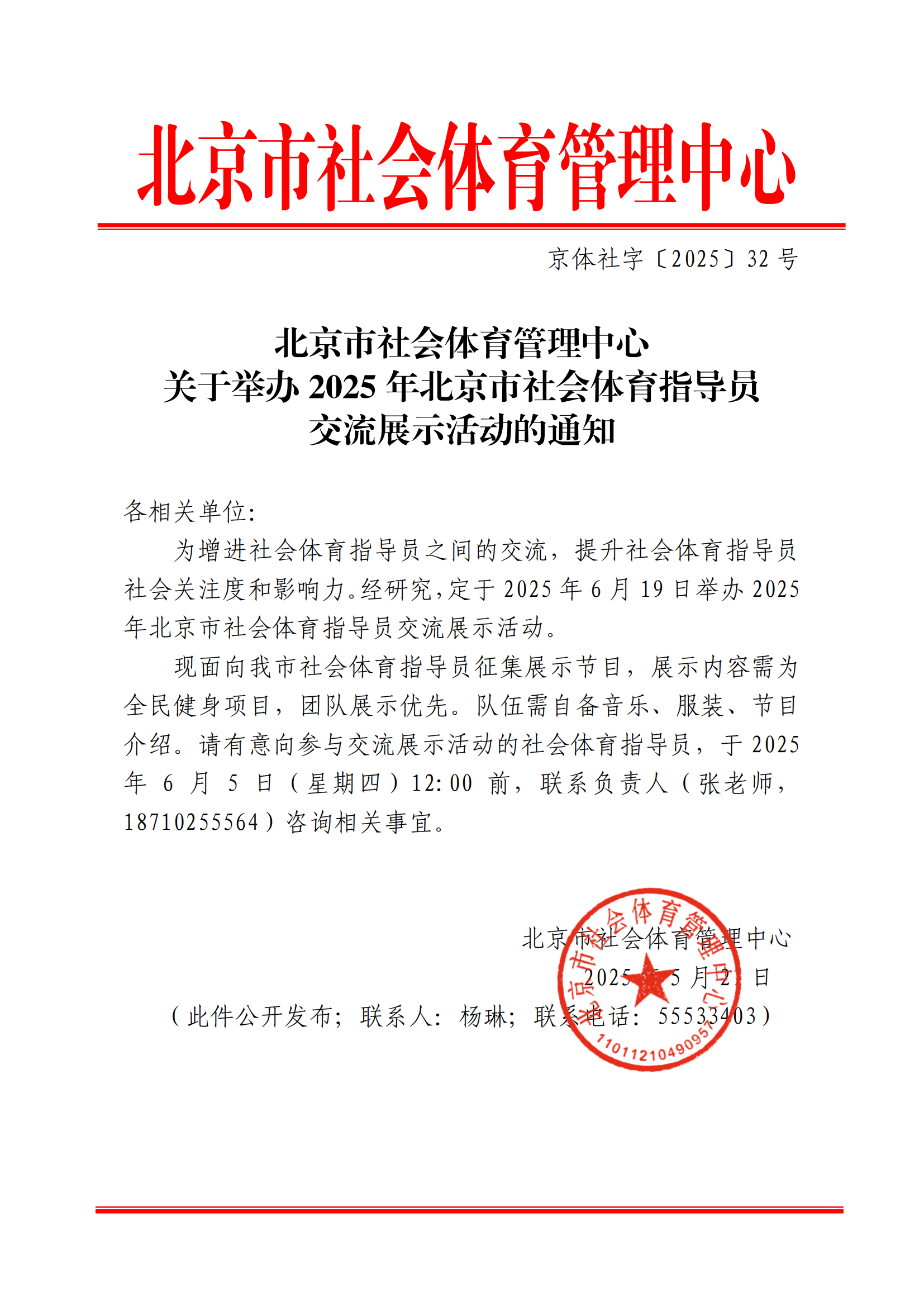 北京市社会体育管理中心关于举办2025年北京市社会体育指导员交流展示活动的通知