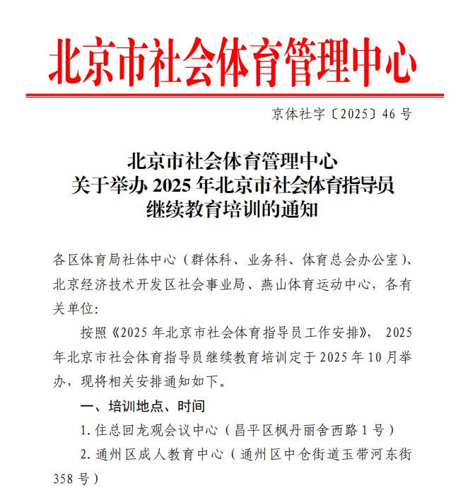 北京市社会体育管理中心关于举办2025年北京市社会体育指导员继续教育培训的通知