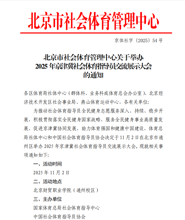 北京市社会体育管理中心关于举办2025年京津冀社会体育指导员交流展示大会的通知