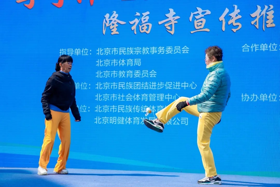 本场宣传推广活动由北京市民族宗教事务委员会、北京市体育局、北京市教育委员会指导,北京市民族团结进步促进中心、北京市社会体育管理中心主办。活动将传统毽球运动与古都街区场景深度互嵌,打造“展演 体验 科普 挑战”四位一体的沉浸式、多元化互动模式,特色鲜明、亮点纷呈。展演环节设置竞技毽球、平踢毽球、花式毽球三大版块。现场观众们既能观赏到专业运动员们展示的毽球基本战术技法和高难度动作,以及入门简易、便于普及的平踢技巧和团队配合,也能醉心于花毽表演的灵动身法和多彩花样,近距离感受非遗文化的深厚底蕴。体验环节中,观众们还走上舞台,得到展演队员们的耐心讲解和示范,并在专业指导下进行毽球对抗体验。活动还特别邀请了非遗老师现场演示毽子制作工艺,讲解毽球发展的历史脉络与文化内涵,带领参与者们在亲手制作中,用可触碰的温度、可凝视的细节、可带走的记忆,开启一场致敬匠心传承的文化浸润之旅。1分钟踢毽计数赛等互动挑战更是激发了各族群众的参与热情,挑战成功者收获了主办方提供的精美纪念品,全民同乐共享的热烈气氛焕发了传统运动与古都街区的活力与生机。