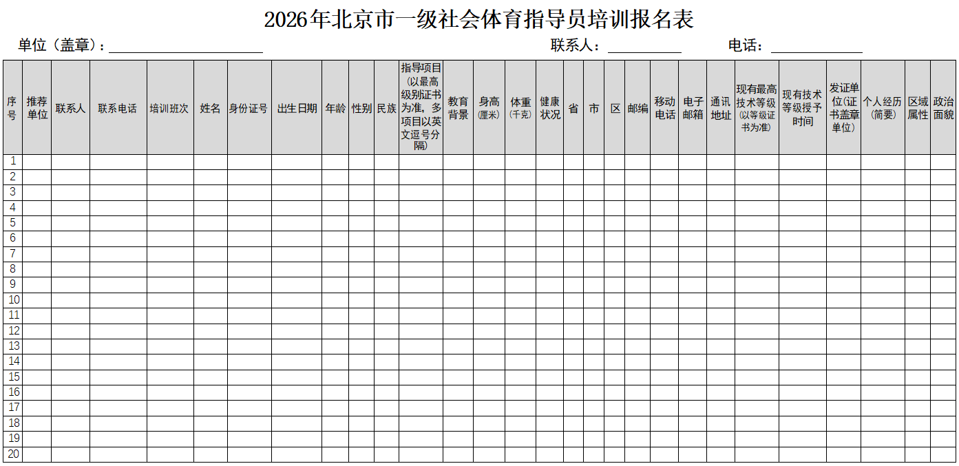 2.2026 年北京市一级社会体育指导员培训报名表