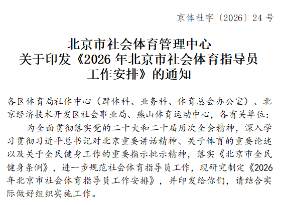 北京市社会体育管理中心关于印发《2026 年北京市社会体育指导员工作安排》的通知